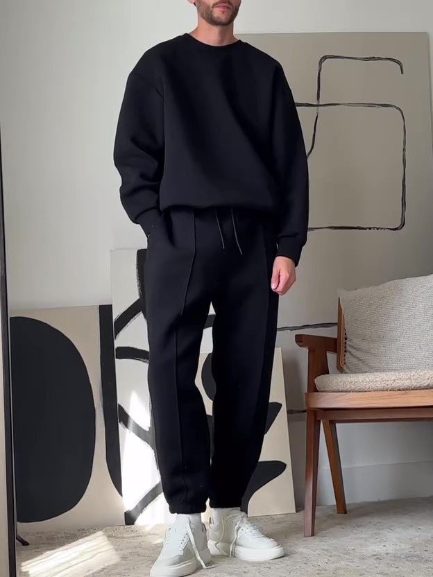 Men’s Casual Round Neck Long Sleeve Sweatshirt & Elastic Waist Pants Set